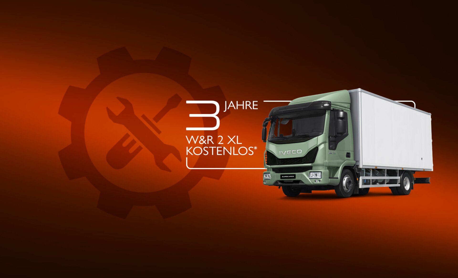 * Dieses Angebot gilt für Gewerbekunden in Deutschland und nur bei teilnehmenden Händlern solange der Vorrat reicht. Abbildung unverbindlich. Änderungen, Irrtum und Widerruf vorbehalten. Für alle Eurocargo MY 24 die bis 31.12.2025 für neue Produktion bestellt werden. Garantie sowie Wartungs- und Reparaturvertrag 2XL mit einer Laufzeit von 36 Monaten oder einer Laufleistung bis 40.000 km/Jahr.